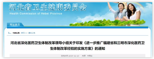 昨日(12月23日),河北省衛(wèi)健委發(fā)布《進(jìn)一步推廣福建省和三明市深化醫(yī)藥衛(wèi)生體制改革經(jīng)驗(yàn)的實(shí)施方案》(下稱《實(shí)施方案》),明確要求開展耗材直接結(jié)算試點(diǎn)。