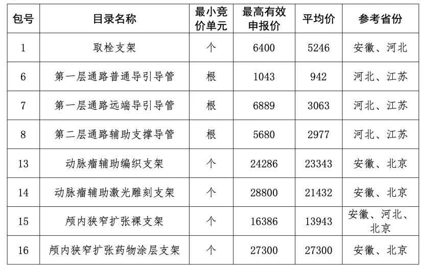 1月22日,河北牽頭的血管介入全國聯采公布擬中選結果,集采覆蓋外周血管介入導引通路類、顱內球囊擴張導管類、外周血管球囊擴張導管類、血流導向密網支架類等4類耗材,預計也將于今年落地。