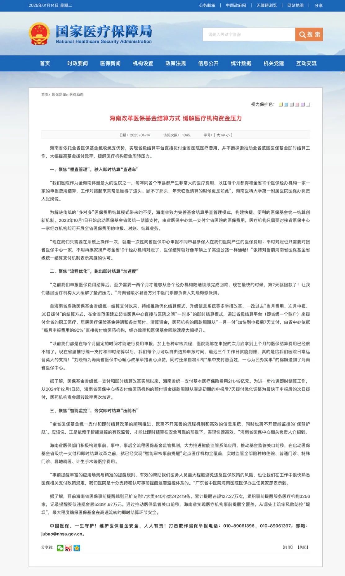 海南早在2023年就啟動(dòng)了醫(yī)保基金省級(jí)統(tǒng)一結(jié)算支付,其后一改過(guò)去“當(dāng)月費(fèi)用、次月申報(bào)、30日撥付”的結(jié)算方式,在全省范圍建立起省醫(yī)保中心直接與醫(yī)院之間“一對(duì)多”的即時(shí)結(jié)算模式,通過(guò)省級(jí)結(jié)算平臺(tái)撥付全省職工醫(yī)療、居民醫(yī)療保險(xiǎn)基金待遇和各類預(yù)付、清算資金,醫(yī)藥機(jī)構(gòu)的回款周期從“一月一付”加快到申報(bào)后7天支付,由省中心依據(jù)“每月申報(bào)費(fèi)用的90%”直接撥付給醫(yī)藥機(jī)構(gòu),經(jīng)辦效率和醫(yī)保基金回款速度大幅提升。