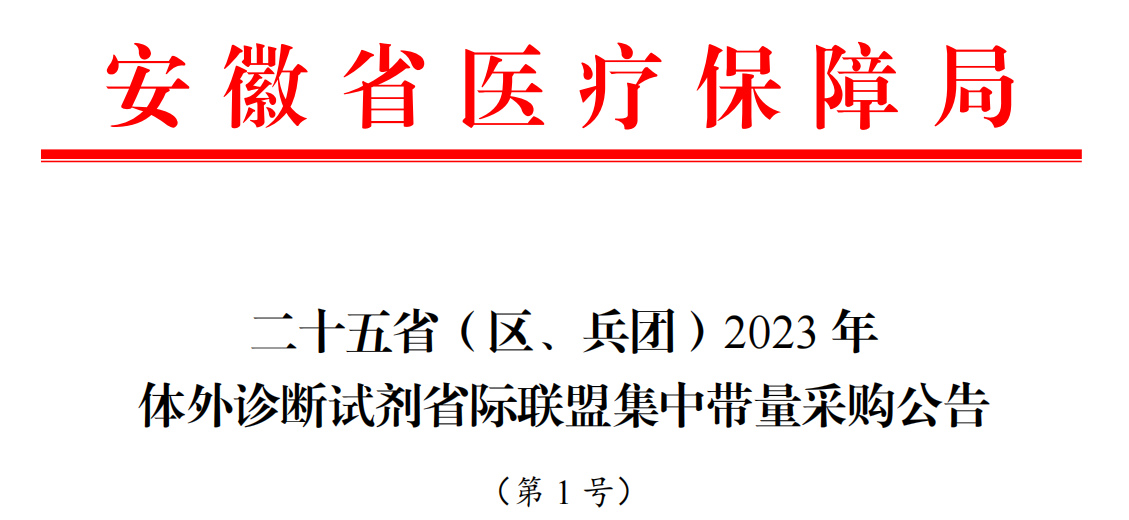 11月17日,安徽省醫藥集中采購平臺正式發布《二十五省(區、兵團)2023年體外診斷試劑省際聯盟集中帶量采購公告(第1號)》(完整見文末)。