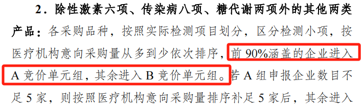 不能滿足組套檢測項目品種齊全的,作為C競價單元組,根據企業報價由低到高或降幅由高到低進行排名,確定中選產品,實施帶量采購及執行相關配套政策。