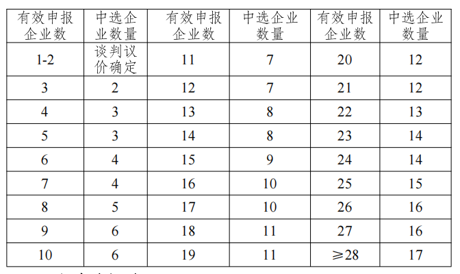 當出現降幅相同的情況時,首年意向采購量多的企業優先;若降幅及首年意向采購量均相同,則采取并列不連續方式排名,最后一個中選排名有兩個及以上企業并列時,所有并列排名企業一并中選。