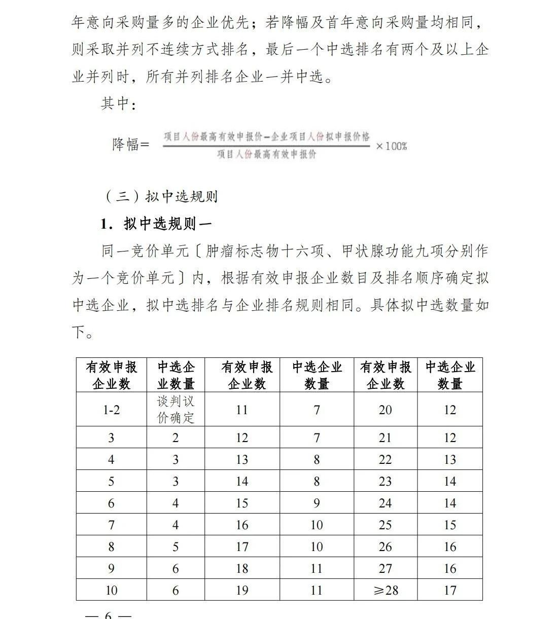 按擬中選規(guī)則一未能中選的企業(yè),兩類產(chǎn)品若整體申報降幅高于50%增補為擬中選企業(yè),不受中選采購企業(yè)數(shù)量限制(具體規(guī)則見文末)。