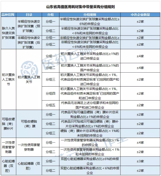 同日,山東省發布《山東省高值醫用耗材集中帶量采購文件(征求意見稿)》,擬對冠脈介入類快速交換擴張球囊、初次置換人工髖關節、可吸收硬腦(脊)膜補片、一次性使用套管穿刺器、心臟起搏器(雙腔)五款耗材進行帶量采購。