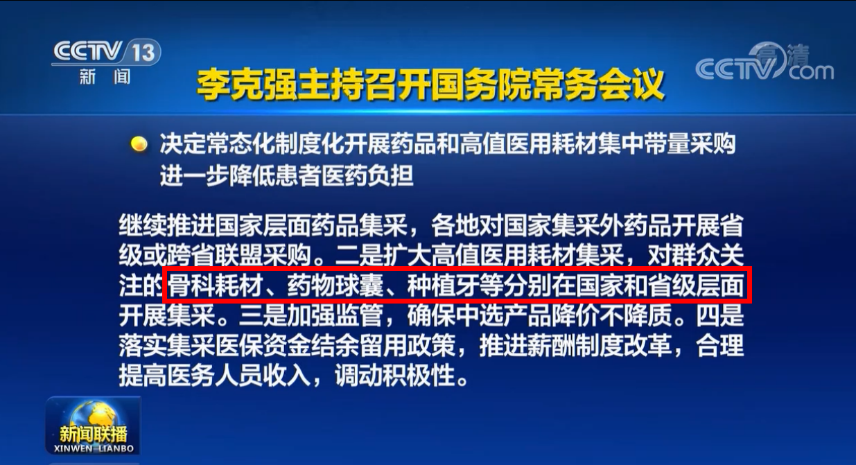 特別值得關注的是,根據國常會內容,骨科耗材或將第二次進入國采范圍。