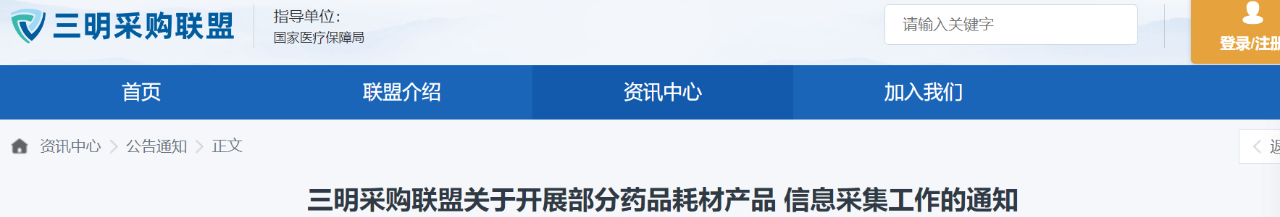 10月15日,三明采購聯盟發布《關于開展部分藥品耗材產品信息采集工作的通知》(簡稱《通知》)。