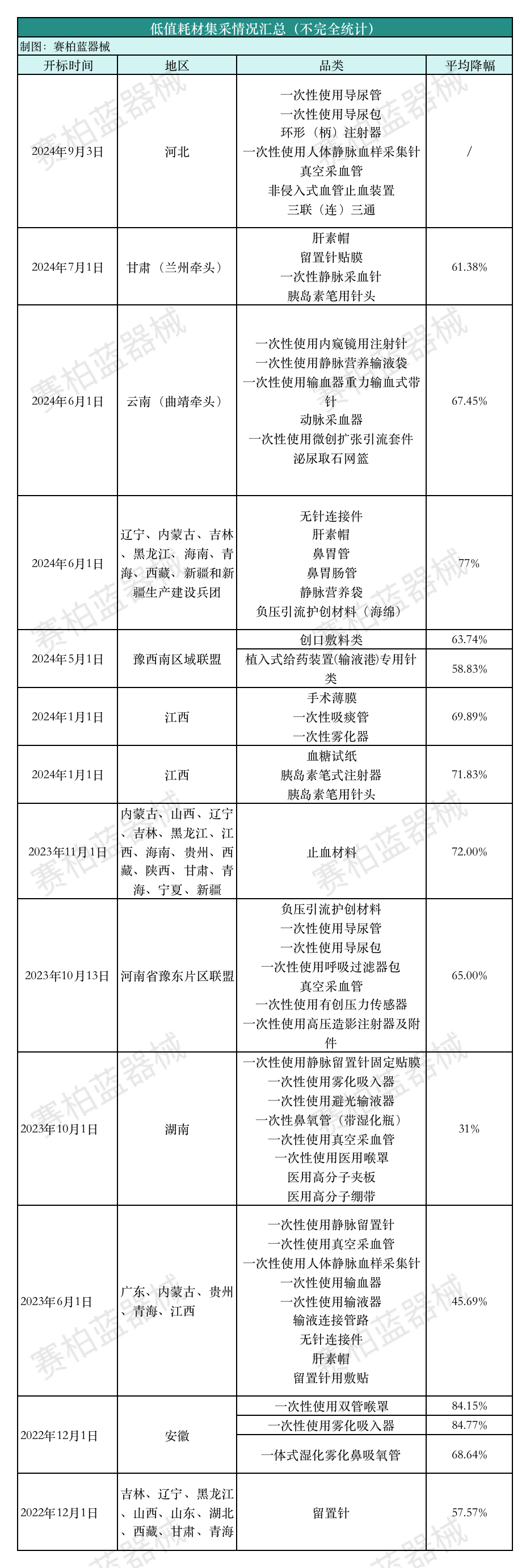 一次性醫用耗材多屬低值耗材范疇,市場規模較大但競爭格局相對分散,集采更多由地級市牽頭、覆蓋全省的聯盟組織開展。