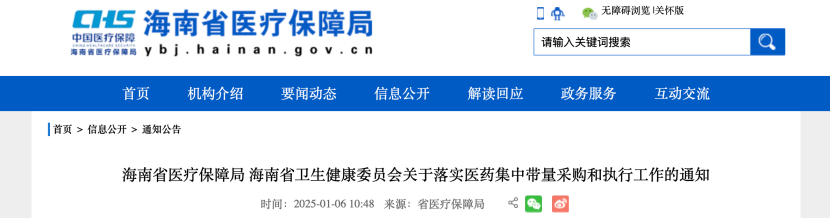 1月6日,海南醫(yī)保局發(fā)布《海南省醫(yī)療保障局 海南省衛(wèi)生健康委員會(huì)關(guān)于落實(shí)醫(yī)藥集中帶量采購(gòu)和執(zhí)行工作的通知》(以下簡(jiǎn)稱《通知》)。