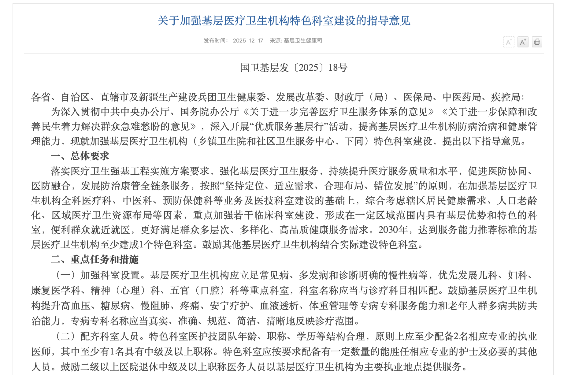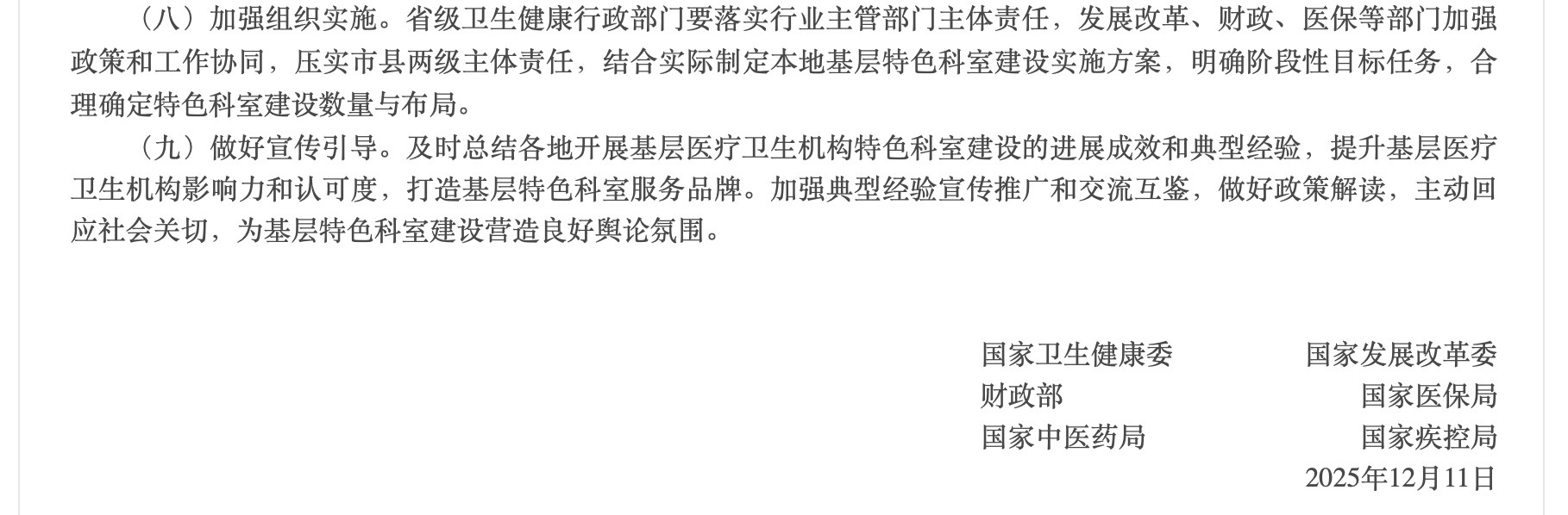 今日(12月17日),國家衛(wèi)健委發(fā)布《關于加強基層醫(yī)療衛(wèi)生機構特色科室建設的指導意見》(以下簡稱《指導意見》,原文附文末)。