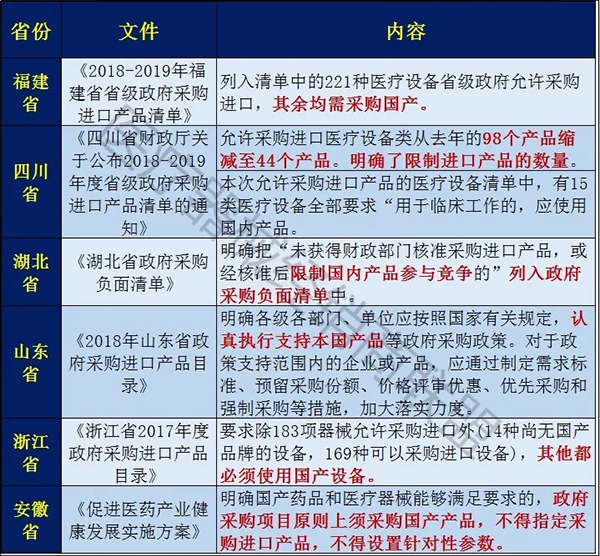 除了天津市,乳酸菌也整理一下近期以來各省采購進口設備的政策。2017年全國對于支持國產的呼聲達到了頂峰,預計2018年,作為長期被進口品牌壟斷的醫(yī)療器械行業(yè),也成為了國家推進國產產品的一個重點領域。