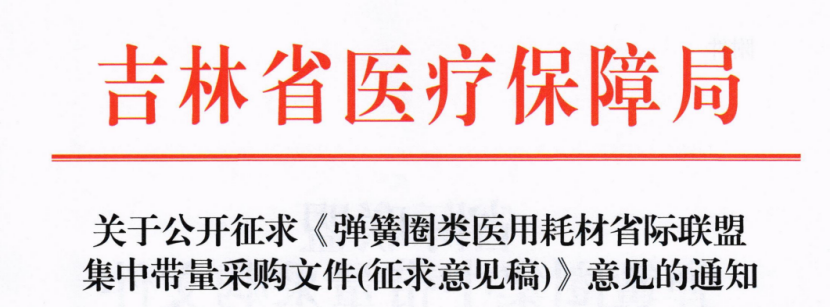 10月21日,吉林省醫(yī)保局發(fā)布《關(guān)于公開征求<彈簧圈類醫(yī)用耗材省際聯(lián)盟集中帶量采購文件(征求意見稿)>意見的通知》及《關(guān)于公開征求<留置針類醫(yī)用耗材省際聯(lián)盟集中帶量采購文件(征求意見稿)>意見的通知》。