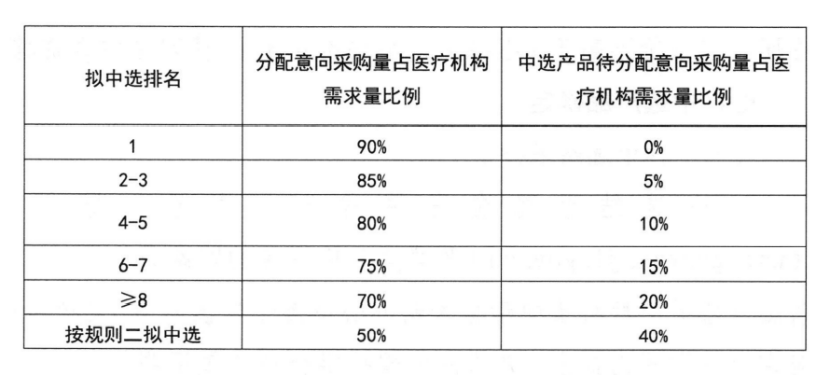 中選產(chǎn)品按中選價格由低到高排名順序,梯度分配意向采購量。
