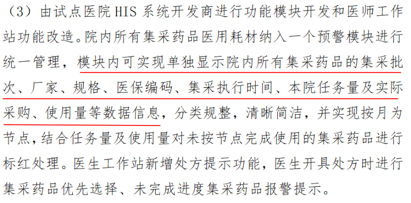其中提出,探索開展二級及以上公立醫(yī)療機(jī)構(gòu)建設(shè)院內(nèi)集采預(yù)警系統(tǒng)試點(diǎn),通過整合醫(yī)院庫房管理系統(tǒng)、醫(yī)療HIS系統(tǒng)、處方系統(tǒng)等多個(gè)系統(tǒng)的數(shù)據(jù)和功能,將所有集采藥品醫(yī)用耗材納入一個(gè)預(yù)警模塊進(jìn)行統(tǒng)一管理,增加集采產(chǎn)品使用情況報(bào)警提示功能,加強(qiáng)集采產(chǎn)品使用監(jiān)管。