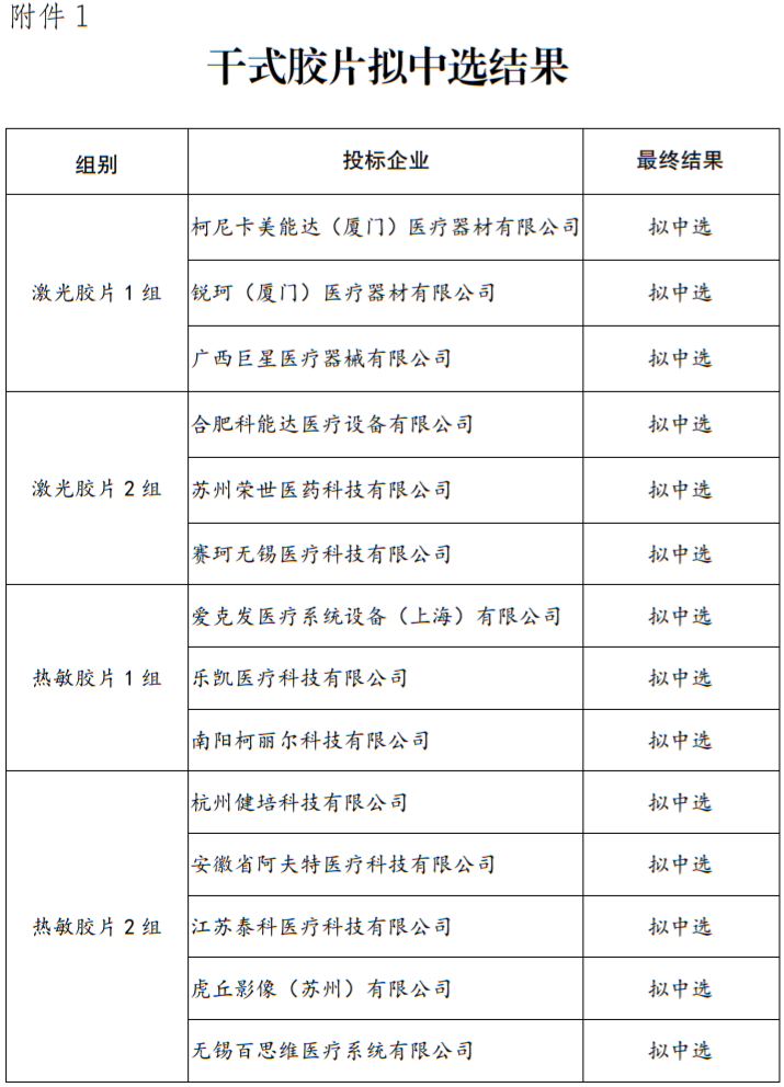 干式膠片擬中選械企包括柯尼卡美能達、銳珂、廣西巨星等。