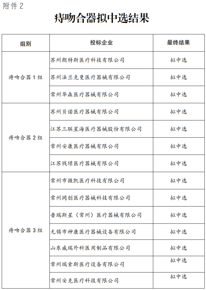 同是12月1日,江蘇省醫保局發布《關于江蘇省第四輪公立醫療機構醫用耗材聯盟帶量采購談判結果的公示》顯示(文末附擬中選械企名單):