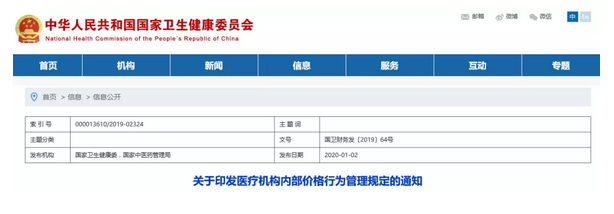 1月2日,國(guó)家衛(wèi)健委官網(wǎng)掛出《關(guān)于印發(fā)醫(yī)療機(jī)構(gòu)內(nèi)部?jī)r(jià)格行為管理規(guī)定的通知》(以下簡(jiǎn)稱《通知》)。這份與與中醫(yī)藥管理局聯(lián)合印發(fā)的文件明確提出,要求醫(yī)療機(jī)構(gòu)建立醫(yī)療服務(wù)成本測(cè)算和成本控制管理制度、醫(yī)療服務(wù)價(jià)格調(diào)價(jià)管理制度、新增醫(yī)療服務(wù)價(jià)格項(xiàng)目管理制度、價(jià)格公示制度等。