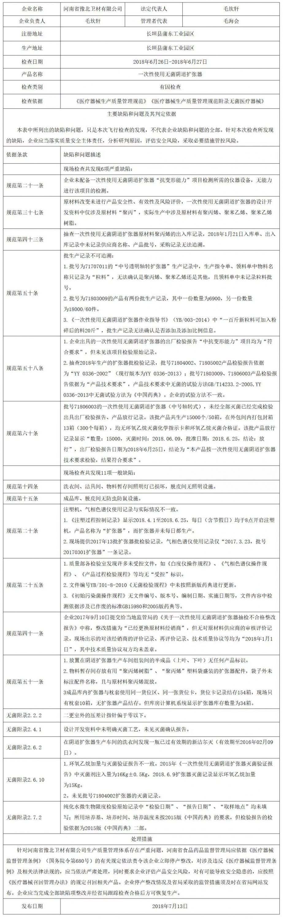 附件:對河南省豫北衛材有限公司飛行檢查通報