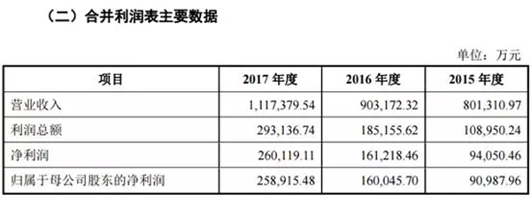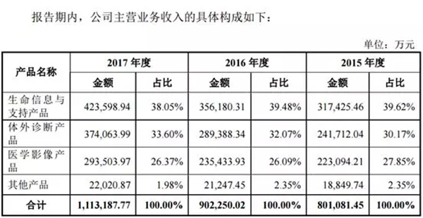 招股說明書亦顯示,邁瑞在2017年度的營業(yè)收入為1117379.54萬元,首次實現(xiàn)了營收超過百億元大關(guān),與2016年相比,同比增長近24%。