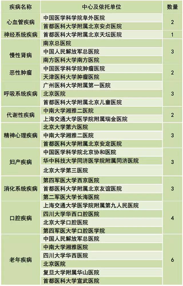 附一:國家臨床醫學研究中心介紹(疾病分布)