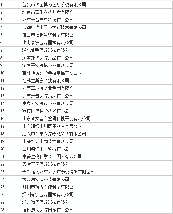 附:今年已被飛檢的28家械企名單