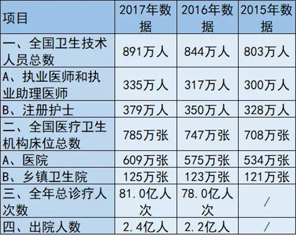 公報顯示,在2017年內,全國醫療衛生機構的總數比2016年又多了0.2萬個。其中,民營醫院一年內多了0.2萬個,診所多了1.3萬個。