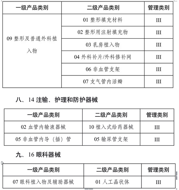 心臟起搏器、髖關節假體、整形用注射填充物等九大類64個品種被列入第一批實施醫療器械唯一標識的產品目錄,(具體產品目錄文末見附件)。