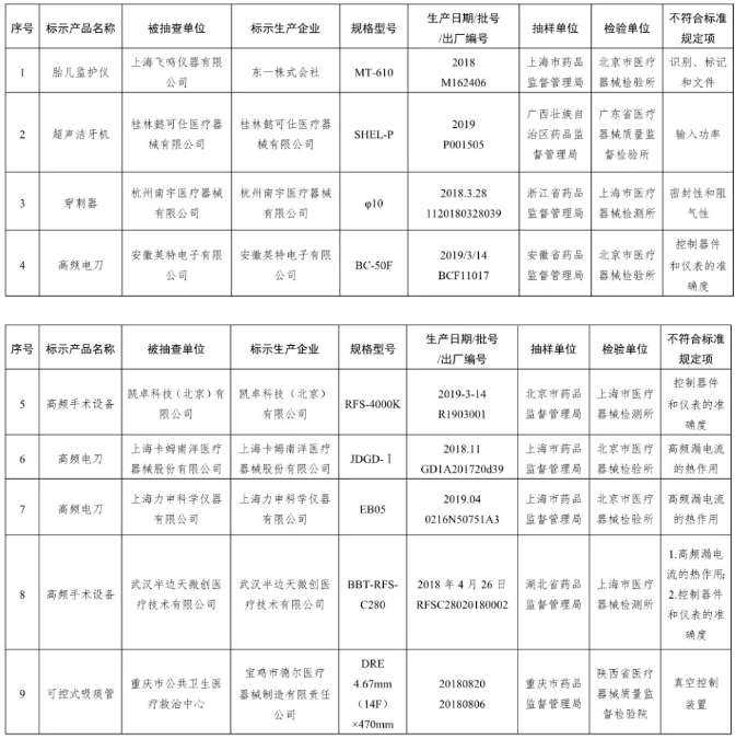 附件:國(guó)家醫(yī)療器械抽檢不符合標(biāo)準(zhǔn)規(guī)定產(chǎn)品名單