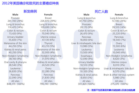 美國癌癥協(xié)會公布2012年度全美癌癥數(shù)據(jù)預(yù)估結(jié)果