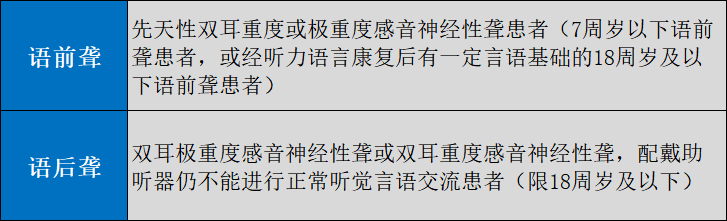 參保人員需符合以下人工耳蝸適應癥之一的可納入醫保支付范圍: