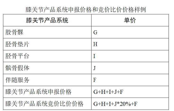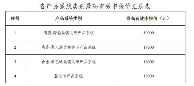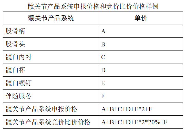 同一部件產(chǎn)品在髖 關(guān)節(jié)或膝關(guān)節(jié)不同產(chǎn)品系統(tǒng)類別和產(chǎn)品系統(tǒng)中價(jià)格應(yīng)保持一致;