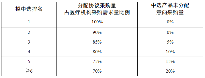 1、同一競(jìng)價(jià)單元中選企業(yè)按中選排名順序,分配協(xié)議采購量;