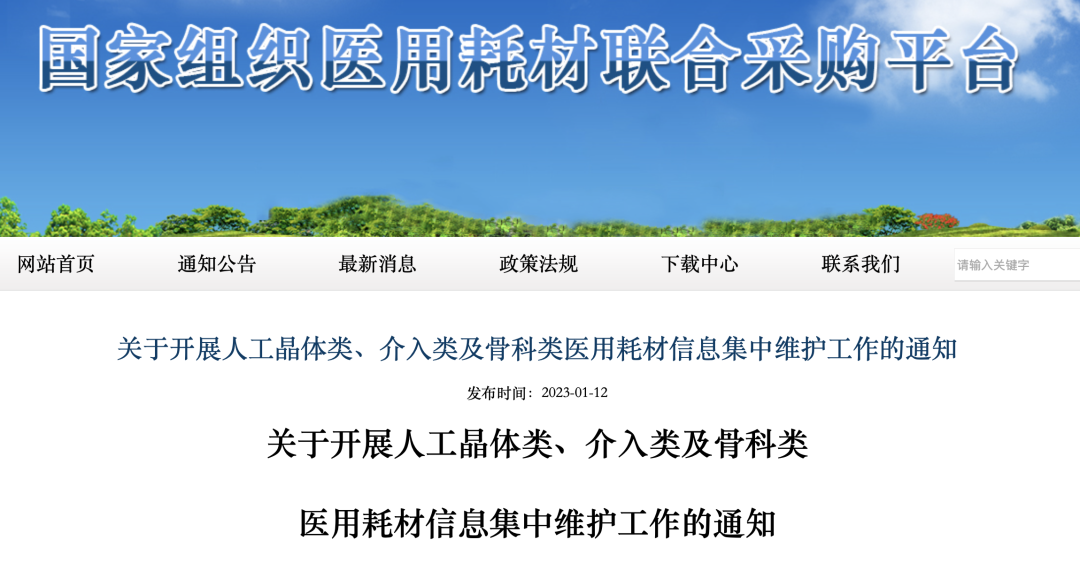 文件提出,將于2023年1月13日起開展人工晶體類、介入類及骨科類醫(yī)用耗材產(chǎn)品信息集中維護(hù)工作。