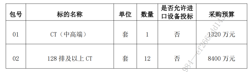 項目三預算總金額9720萬元,擬采購CT(中高端)1套,128排及以上CT12套。不允許進口設備投標。