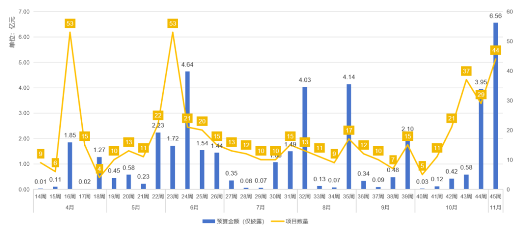 第14周(4月1日)至45周(11月10日)我國設備更新招標情況