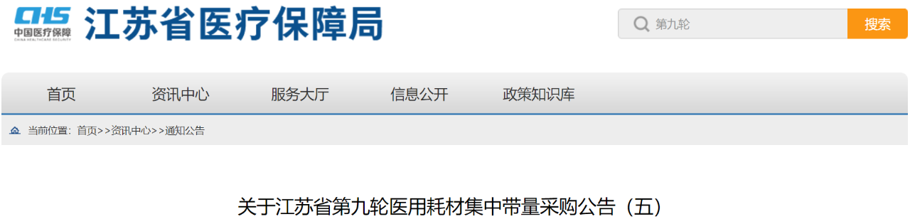 近日,江蘇醫保局發布《關于江蘇省第九輪醫用耗材集中帶量采購公告(五)》(簡稱《公告》)。