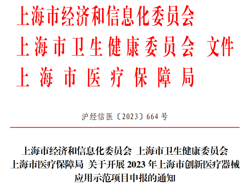 近日,上海市經信委發布《上海市經濟和信息化委員會 上海市衛生健康委員會 上海市醫療保障局 關于開展2023年上海市創新醫療器械應用示范項目申報的通知》(以下簡稱《通知》)。