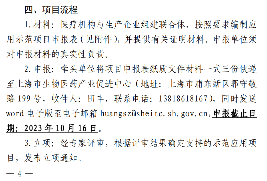 根據《通知》,由上海市醫療機構與生產企業組成“1+N+1”聯合體共同申報,由1家本市醫院牽頭、N家本市醫院/研究單位和1家本市醫療器械企業共同參與。