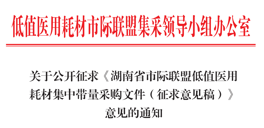 近日,湖南株洲市醫(yī)保局發(fā)布《關(guān)于公開征求<湖南省市際聯(lián)盟低值醫(yī)用耗材集中帶量采購文件(征求意見稿)>意見的通知》(以下簡稱《通知》)。