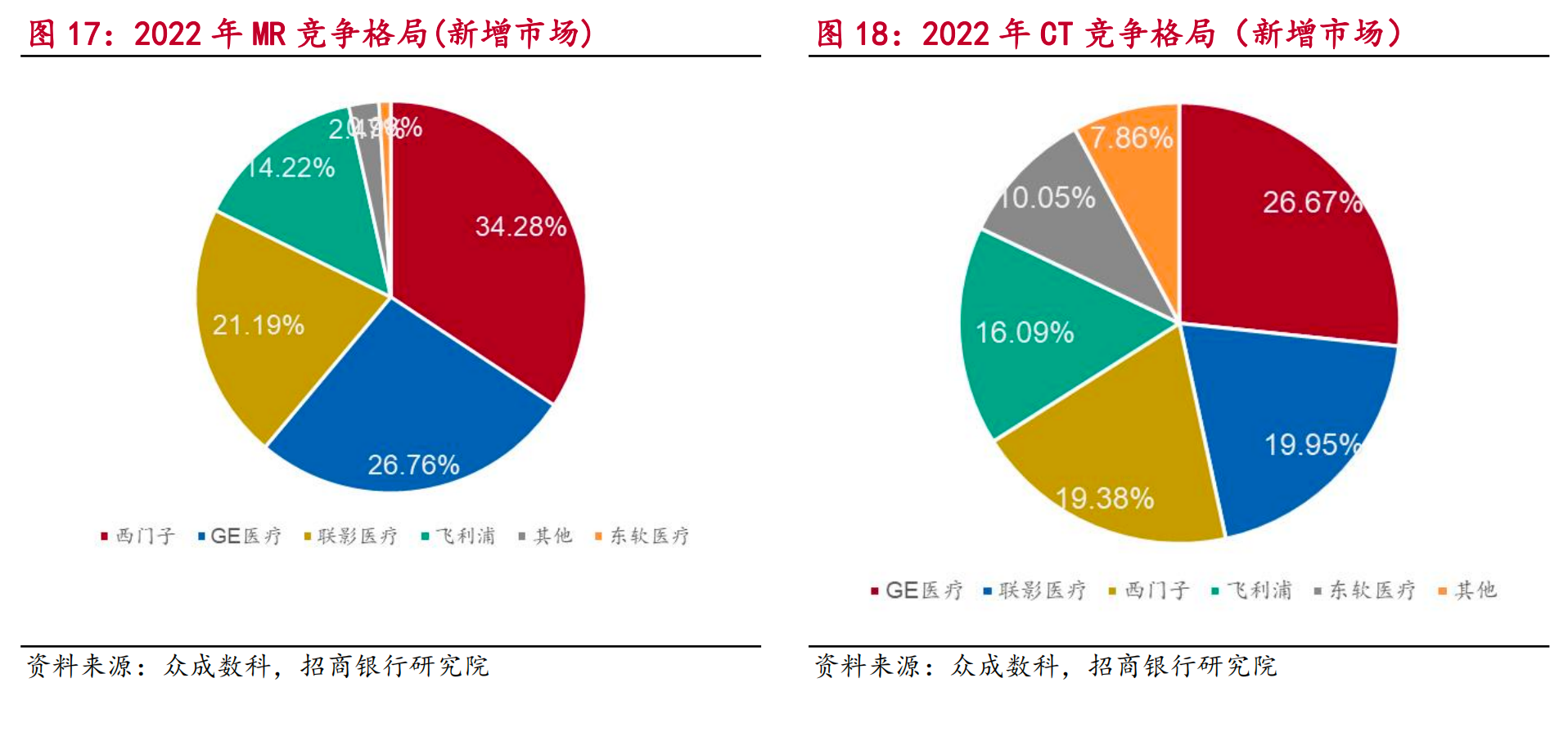 對醫(yī)學(xué)影像設(shè)備細(xì)分市場新增市場競爭格局進(jìn)行統(tǒng)計,2022 年各細(xì)分賽道國產(chǎn)化率較高的細(xì)分領(lǐng)域為 US、CT、PET-CT、MR,但國產(chǎn)化率均在 20-40%之間。