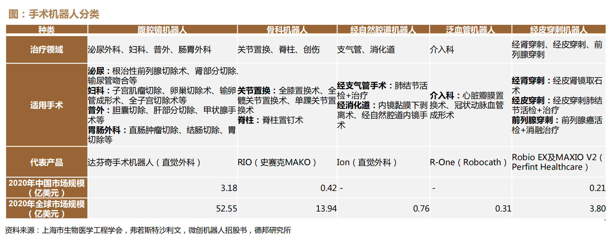 目前手術(shù)機(jī)器人主要分為腔鏡機(jī)器人、骨科機(jī)器人、經(jīng)自然腔道機(jī)器人、泛血管機(jī)器人及經(jīng)皮穿刺機(jī)器人五個賽道,其中腔鏡機(jī)器人為目前手術(shù)機(jī)器人最主流、商業(yè)化最成熟的賽道。