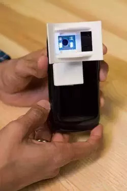 這是一款利用手機外設將手機功能拓展為一個掃描儀,通過該設備可以檢查潛在的癌癥特征。外形是一款手持式設備,手機外設有個手柄,可以手持操作,大小類似于一個掃描槍。如果該設備被廣泛實施,可以作為對癌癥或類似疾病的檢測的新型高效工具。該外設是由3D打印機制作,因此價格較為低廉。
