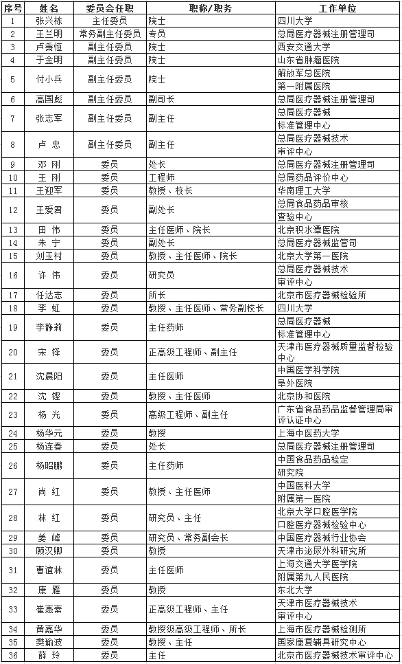 國家食品藥品監(jiān)督管理總局第一屆醫(yī)療器械分類技術(shù)委員會執(zhí)行委員會委員名單