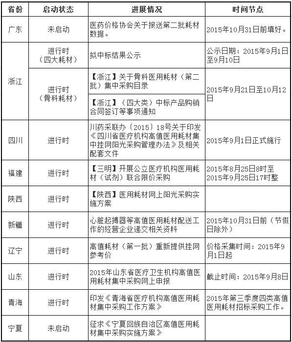 10省醫(yī)用耗材招標(biāo)進(jìn)展一覽表