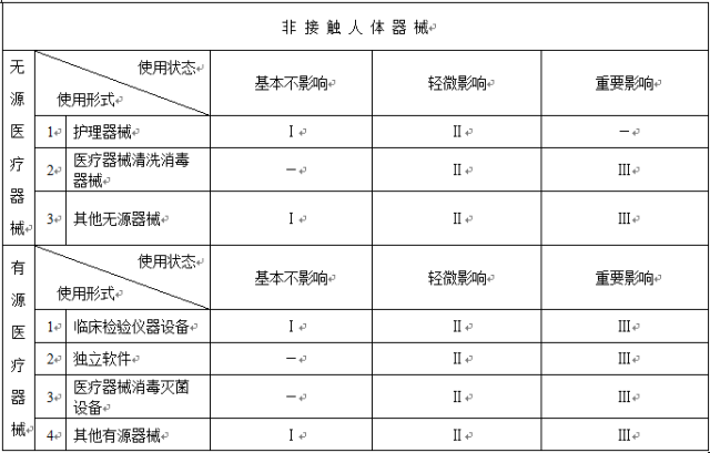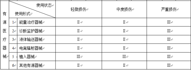 注:1.本表中“Ⅰ”、“Ⅱ”、“Ⅲ”分別代表第一類、第二類、第三類醫療器械;