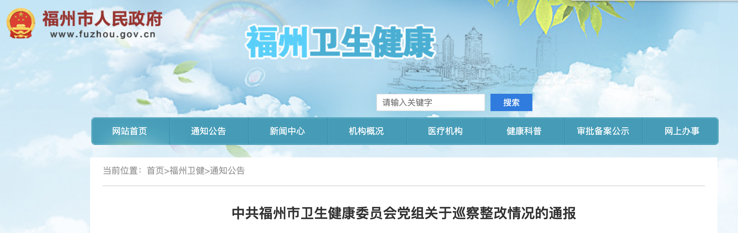 近日,福建省福州市衛(wèi)健委發(fā)布巡察整改情況的通報。