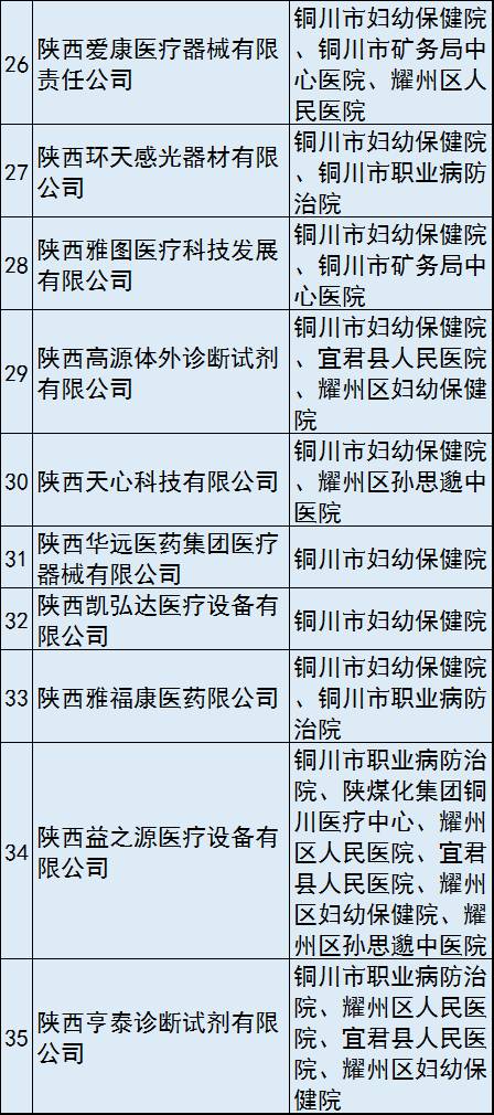 公示顯示,拿到銅川市耗材“兩票制”配送資格的共有71家醫療器械企業,服務對象覆蓋該市12家公立醫療衛生機構。