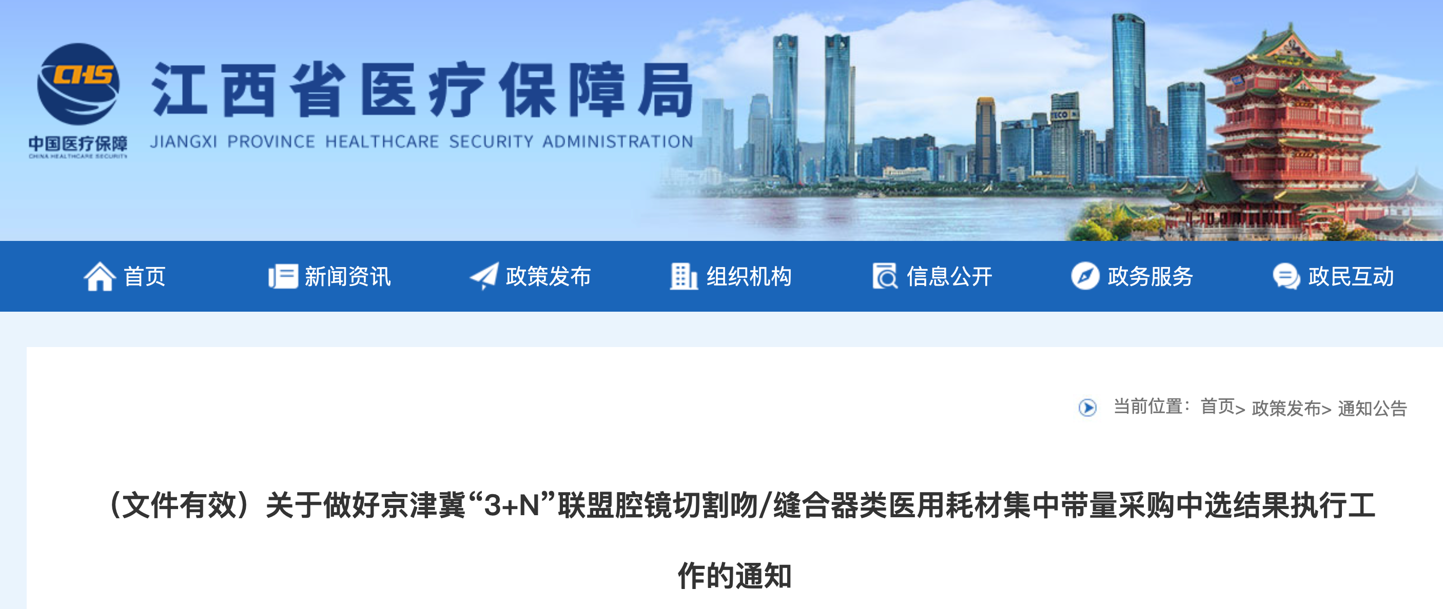 01江西執(zhí)行通用介入、神經(jīng)外科、腔鏡切割吻/縫合器類耗材集采結(jié)果