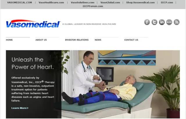 Vasomedical公司是體外反搏 (ECP) 治療的黃金標準—EECP® Therapy 系統的擁有者,它是一家多元化的醫療科技公司,專注于醫療器材的設計、制造于銷售。
