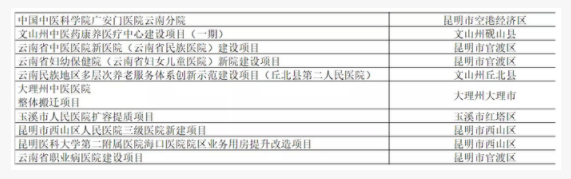 其中,新開工項目里含醫療衛生項目12項,分別是: