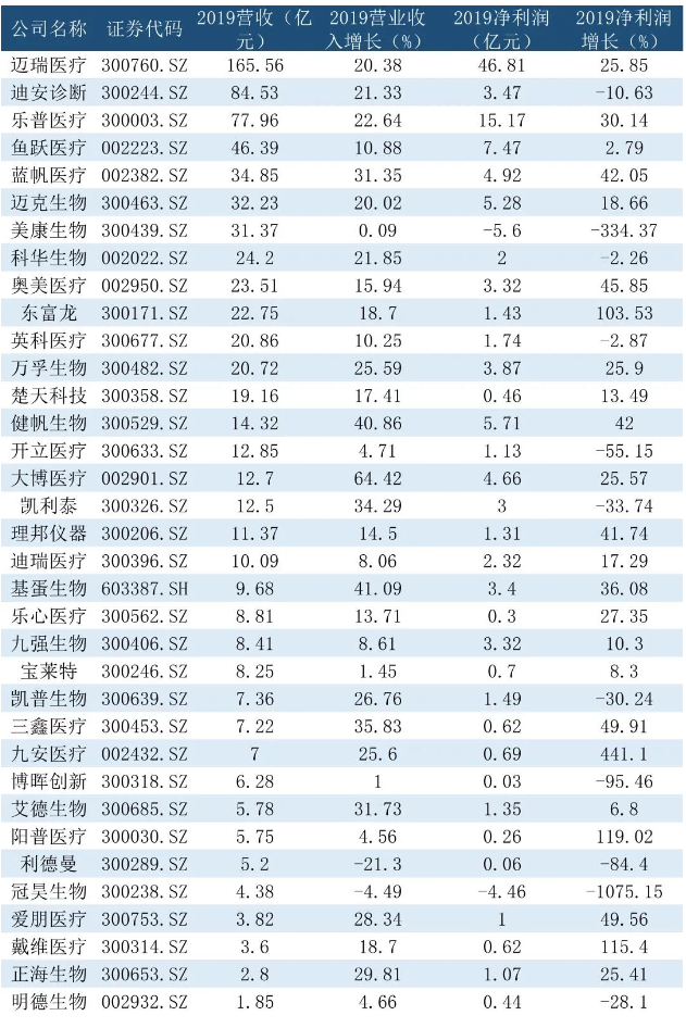 或受宏觀環境變化及經濟增速放緩等壓力影響,部分中小市值醫療器械企業業績下滑。